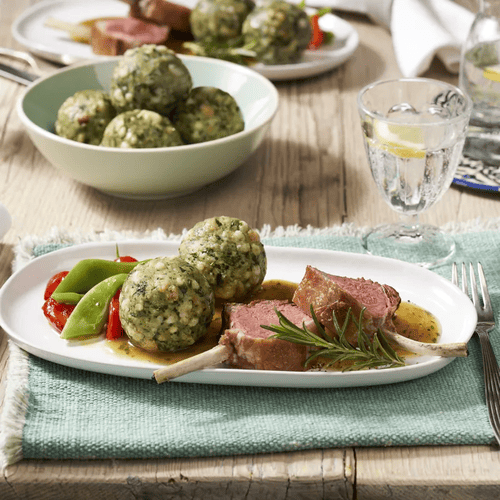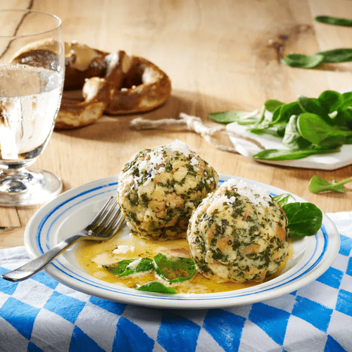 Knödel aus Spinat und Brezen-Semmel-Würfel